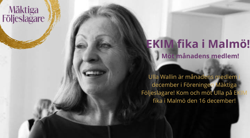 Ulla Wallin är december månads medlem i Mäktiga Följeslagare och van kursledare i EKIM. Hon kommer att berätta om sina upplevelser av EKIM och bjuda in till samtal. Anmäl dig här om du kommer! Om du inte är med på Facebook så kan du mejla anna.aberg@annaaberg.se och berätta att du kommer.